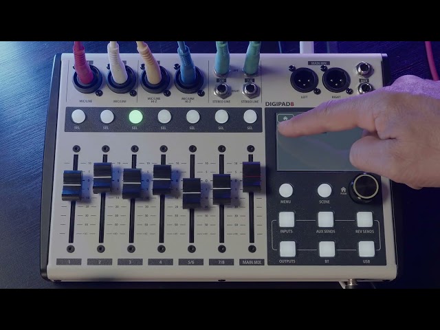 Dai microfoni e strumenti ai dispositivi di riproduzione, DIGIPAD 8 è pronto a tutto grazie ai suoi ingressi combo MIC/LINE e stereo. Con due mandate AUX indipendenti e una mandata FX dedicata, si adatta facilmente a qualsiasi configurazione, sia sul palco, in studio o in installazioni fisse.