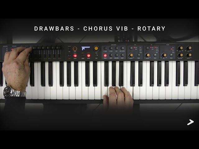 - Sezione "Tone wheel Organ" a modellazione fisica, con 9 Drawbars, percussion, Chorus&Vibrato
